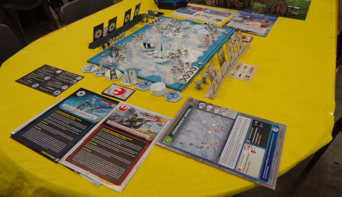 Des démonstrations avec des jeux tout public (et en 1vs1, en 2vs2, en coop, …) dans différents univers (heroïc fantasy, historique, science-fiction, navale, aéronautique, …) :