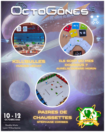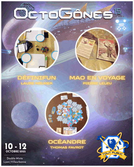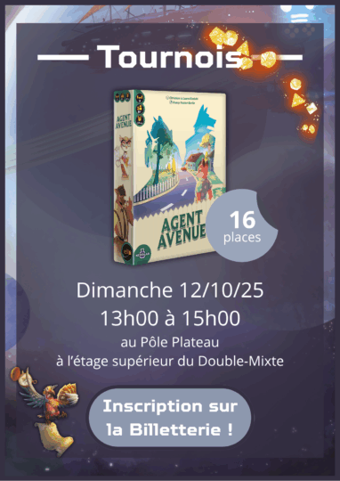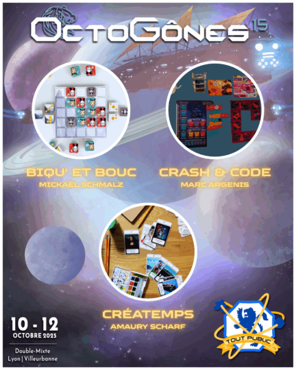 • Nous mettons à l’honneur les auteurs et autrices de Lyon avec l’aimable présence de la CAL, qui regroupe tout ce qui se fait de bon dans le monde du jeu autour de la capitale de gaules. Des tables animées par leurs soins sont présentes au Pôle Plateau à l’étage supérieur du Double-Mixte.